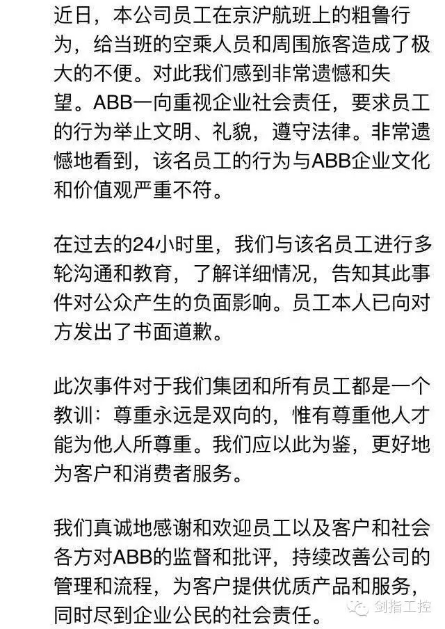 昨天,“剑指工控”转发的疑似ABB北亚高管飞机上耍横引起了无数网友的热议,一位剑指工控的朋友写出了一首小诗。